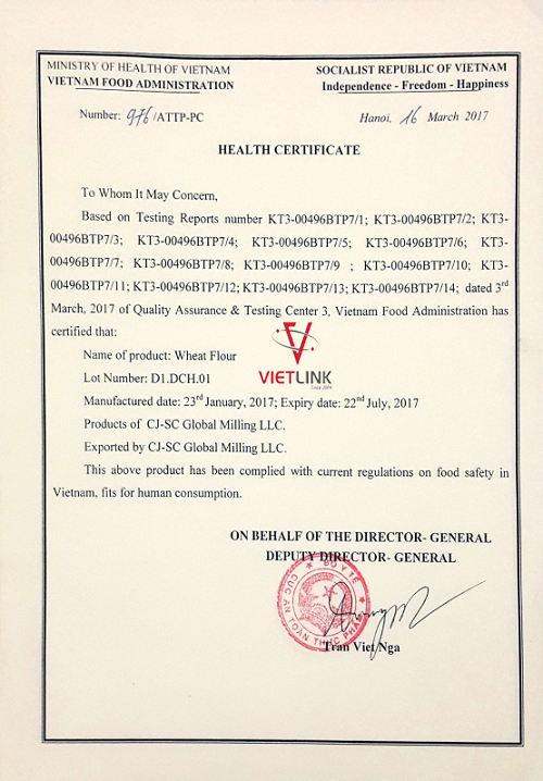 - Giấy chứng nhận Health Certificate – HC xin cho sản phẩm do Cục an toàn thực phẩm – Bộ Y Tế cấp